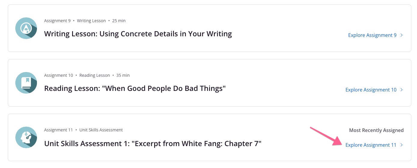 To assign a Unit Skills Assessment, click on the desired unit from the grade level’s 360 page, and then scroll to find the assessment in the Unit Lessons and Materials section of the unit page.